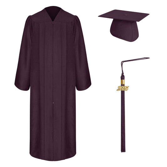 Matte Maroon College and University Graduation Cap, Gown & Tassel
